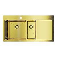 Мойка для кухни. Материал Нерж. сталь/светлое золото. Размер мойки 1000x510 мм. Размер чаши 420x400/ 180x400 мм. Глубина чаши 200/180 мм. База от 90 см. Толщина материала 1,2 мм. Производство Япония. Гарантия 3 года. Чаши слева Наличные, б/н расчет, банковские карты
