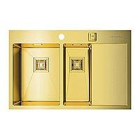 Японская мойка для кухни цвет светлое золото, установка врезная. Две чаши и крыло. Размер мойки 780х510 мм, глубина 200/200 мм. База 60 см. Толщина стали 1,2 мм Наличные, б/н расчет, банковские карты
