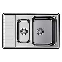 Мойка из нержавеющей стали с двумя чашами и крылом. Установка сверху столешницы. Размер мойки 790х500 мм, размер чаши 340х420х180 мм и 180х340х141 мм. Тумба от 60 см. Толщина металла 0,8 мм. Комплектация: уплотнительная прокладка, донный клапан, сифон. Производство Япония. Гарантия 3 года Наличные, б/н расчет, банковские карты
