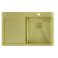 Размер мойки: 780х500 мм. Размер чаши: 400х400х200 (180) мм. Чаша справа. Standart: сифон с переливом, крепежи для врезного монтажа , выпуск в цвет чаши. Чаша: сатин. Ручная сварка. 1.2 мм. R10. Покрытие: PVD. Цвет: Светлое золото. Производство Россия. Производитель Seaman. Гарантия 5 лет. Наличные, б/н расчет, банковские карты
