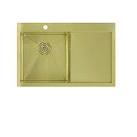 Размер мойки: 780х500 мм. Размер чаши: 400х400х200 (180) мм. Чаша слева. Standart: сифон с переливом, крепежи для врезного монтажа , выпуск в цвет чаши. Чаша: сатин. Ручная сварка. 1.2 мм. R10. Покрытие: PVD. Цвет: Светлое золото. Производство Россия. Производитель Seaman. Гарантия 5 лет. Наличные, б/н расчет, банковские карты