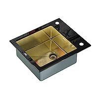 Мойка из закаленной стали черного цвета и чаши из нержавеющей стали с покрытием PVD бронзового цвета. Оборачиваемая. Одна чаша. Установка сверху столешницы. Размер мойки 600х510 мм. Размер чаши 430х430 мм, глубина чаши 200 мм. Толщина стали 1,2 мм, закаленное стекло 8 мм. Комплектация: сифон и крепежи. Производитель ZORG Наличные, б/н расчет, банковские карты