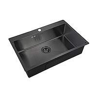 Мойка в цвете графит одна чаша, нержавеющая сталь с покрытием PVD. Полка под смеситель. Установка под столешницу, сверху столешницы и вровень со столешницей. База от 80 см. Размер мойки 750х510 мм, размер чаши 690х410 мм, глубина чаши 200 мм. Толщина стали 1,5-3 мм. Комплектация: сифон и крепежи. Производитель ZORG Наличные, б/н расчет, банковские карты