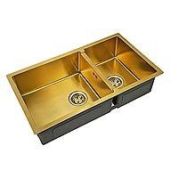 Мойка в бронзовом цвете две чаши, нержавеющая сталь с покрытием PVD. Установка под столешницу, сверху столешницы и вровень со столешницей. База от 80 см. Размер мойки 780х440 мм, размер чаши 440х390 мм и 260х390 мм, глубина чаши 200 мм. Толщина стали 1,5 мм. Комплектация: сифон и крепежи. Производитель ZORG Наличные, б/н расчет, банковские карты