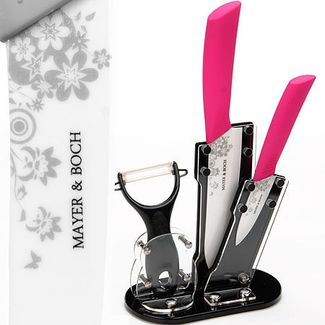 - 21858-5 Ножи КЕРАМИЧЕСКИЕ МАЛИНОВАЯ сил руч+овощерезка(4пр)МВ(х10) в каталоге Кухонные ножи и подставки в Москве;