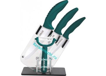 Набор керамических ножей Frank Moller (Франк Мюллер) FM-335 Керамические ножи Frank Moller из 5 пр. - Материал: ножа циркониевая керамика - Керамические белые лезвия - Зеленые силиконовые ручки - Нож поварской -15 см - Нож универсальный -12, 5 см - Нож для чистки овощей - 10 см - Керамическая овощечистка - Эффектная подставка для ножей - Подарочная упаковка None