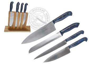 Закажите Кухонный набор Шеф-повар (сталь N690), ц м; G10, подставка у компании Русские ножи в Москве на портале Alloy: