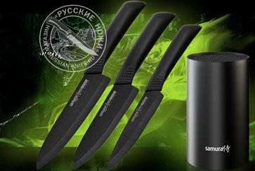 - .Набор из 3 ножей SKC-004B "Samura", циркониевая керамика и универсальная браш- подставка в каталоге Кухонные ножи и подставки в Москве;