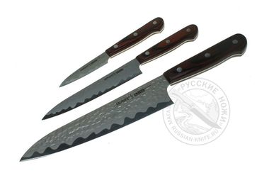 Закажите Набор из трех кухонных ножей SAMURA KAIJU, SKJ-0220, Каидзю, AUS 8, черненая сталь, рукоятка из дерева у компании Русские ножи в Москве на портале Alloy: