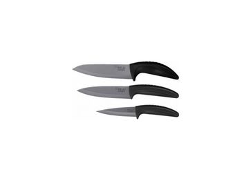 Набор керамических ножей Kelli KL-2021 Набор ножей с керамическими лезвиями Kelli KL-2021 незаменимы на Вашей кухни. Эргономичная ручка позволяет держать нож свободно и максимально удобно. Нарезать продукты или чистить овощи одно удовольствие. Благодаря сверхвысокой твердости керамического лезвия, керамическим ножом Kelli KL-2021 можно резать без заточки долгое время. На керамических ножах Kelli KL-2021 не появляются царапины и при этом он ощутимо легче стального. Керамические ножи Kelli KL-2021 не оставляют на продуктах неприятного послевкусия. Для нарезки продуктов используйте разделочную доску. Керамические ножи Kelli KL-2021 из 3 пр. • Материал: ножа циркониевая керамика • Керамические черные лезвия • Черные силиконовые ручки • Нож поварской - 15 см • Нож универсальный - 12,5 см • Нож для чистки овощей - 10 см • Подарочная упаковка None Есть доставка.