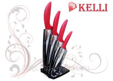 Набор керамических ножей Kelli KL-2062Набор ножей с керамическими лезвиями Kelli KL-2062 незаменимы на Вашей кухни. Эргономичная ручка позволяет держать нож свободно и максимально удобно. Нарезать продукты или чистить овощи одно удовольствие. Благодаря сверхвысокой твердости керамического лезвия, керамическим ножом Kelli KL-2062 можно резать без заточки долгое время. На керамических ножах Kelli KL-2062 не появляются царапины и при этом он ощутимо легче стального. Керамические ножи Kelli KL-2062 не оставляют на продуктах неприятного послевкусия. При чистки просто сполосните керамические ножи водой или протрите кухонным полотенцем. Для нарезки продуктов используйте разделочную доску. Керамические ножи Kelli KL-2062 из 5 пр.• Материал: ножа циркониевая керамика• Керамические белые лезвия• Красные силиконовые ручки • Нож поварской -15 см• Нож для нарезки -15 см• Нож универсальный -12,5 см• Нож для чистки овощей – 10 см• Эффектная подставка для ножей• Подарочная упаковка