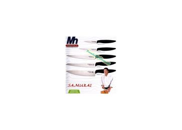 Набор ножей Millerhaus MH-9241 (Samurai) Этот изысканный профессиональный набор ножей Millerhaus MH-9241 (Samurai) включает в себя пять ножей различных размеров, что позволяет готовить разнообразные блюда. Ножи Millerhaus MH-9241 (Samurai) искусно изготовлены из высоколегированной стали в дамасском стиле. Очень острое лезвие этих ножей удобны в применении для всех видов продуктов. А эргономичные ручки ножей с нескользящим мягким покрытием Soft-Touch удобно лежат в руке. Набор кухонных ножей Millerhaus MH-9241 (Samurai) соответствует европейскому качеству и отвечает требованиям современного дизайна. Вы можете ожидать только наилучшее качество от этого набора Millerhaus MH-9241 (Samurai). Используйте кухонные ножи Millerhaus MH-9241 (Samurai) только на разделочной доске из дерева или пластика (стеклянные доски способны затупить любую сталь) Набор ножей Millerhaus MH-9241 (Samurai) Набор кухонных ножей Millerhaus из 5 пр. Материал: высоколегированная сталь Ручки с покрытием Soft-Touch Очень острое лезвие ножей • Поварской нож - 20 см • Нож хлебный - 20 см • Нож для нарезки - 20 см • Нож разделочный - 20 см • Нож универсальный - 12,5 см • Нож для чистки овощей - 9 см • Подарочная упаковка None Есть доставка.