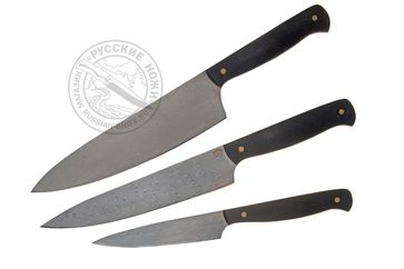 Закажите Набор поварская тройка (сталь нержавеющий дамаск) рукояти G10 черные у компании Русские ножи в Москве на портале Alloy: