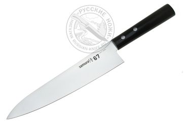 - Нож кухонный SS67-0085 Samura 67 европейский шеф, 208 мм, 58 HRC, ABS-пластик под дерево по выгодной цене 2 445 р. руб.;