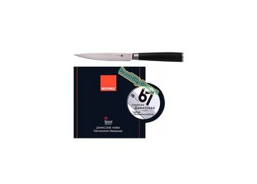 Нож универсальный Bergner BG-4481 дамасская сталь Ножи Bergner BG-4481 (Samurai) из японской дамасской стали обладают великолепными режущими свойствами, высокой упругостью и прочностью. Ножи Bergner BG-4481 из дамасской стали серии Самурай воплощают в себе современные передовые технологии, что делают их уникальными. Дамасская сталь, материал который нельзя спутать, так как он имеет характерный волнообразный рисунок. Молибден-ванадий - основная сталь ножей  Bergner BG-4481 Самурай. Лезвие ножей Bergner BG-4481 (Samurai) изготавливаются из многослойной японской дамасской нержавеющей стали, которая состоит из пересекающихся слоев твердой высокоуглеродистой и гибкой низкоуглеродистой стали. Сердцевина лезвия выполняется из сверхтвердого кобальтового сплава V-Gold 10 с высоким содержанием углерода, благодаря этому нож способен выдержать довольно значительную нагрузку. Ножи Bergner BG-4481 серии Samurai имеет в обкладке 67 слоев дамасской стали, благодаря этому сочетанию ножи получаются очень прочными и сверхострыми. 67 слойная дамасская сталь обладает уникальной твердостью и прочностью. Сверхострые и прочные ножи Bergner BG-4481 из дамасской стали серии Самурай долго держат заточку и выдерживают проверку времени даже при длительном использованием. Ножи из дамасской стали Bergner BG-4481 оснащены утяжеленными хорошо сбалансированными комбинированными ручками (материал рукояти: микарта) не только элегантны, но и имеют эргономичный дизайн, что обеспечивает особое удобство при нарезке. Эту уникальную коллекцию оценят по достоинству даже профессиональные повара. Каждый нож серии Bergner BG-4481 (Samurai) упакован в полированный деревянный футляр. Нож кухонный универсальный Bergner BG-4481 (Samurai) дамасская сталь Нож универсальный Bergner BG-4481 Материал клинка: Japan V-Gold 10 67 слойная дамасская сталь Материал ручки: микарта Двусторонняя заточка Нож кухонный универсальный - 12,5 см Каждый нож Bergner (Samurai) упакован в полированный деревянный футляр Non