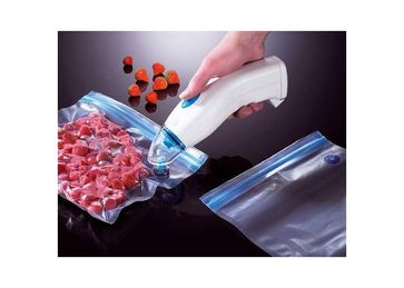 Vacuum Sealer-прибор для вакуумной упаковки.Прост в управлении.Его удобно держать в руках. Комплектуется инструкцией,специализированными пакетами и зарядным устройством.Обеспечивает герметичность,прекращая доступ воздуха.Сохраняет овощи,фрукты,мясо,рыбу свежими дольше.