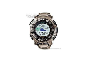 Коллекция: PRO-TREK Корпус: Пластик + алюминий Гарантия: 1 год. Комплектация: часы, фирменная упаковка, инструкция, гарантийный талон. Особенности:Полностью автоматическая электролюминесцентная подсветка с автоматической активацией при тусклом, неясном свете и выключением подсветки при достаточном освещении. Питание от солнечной энергии, индикатор заряда батареи. Модуль часов рассчитан на работу при низких температурах. Функция автоматического сохранения энергии. Время работы аккумулятора без подзарядки - 6 месяцев, при включенной функции сохранения энергии - 23 месяца. Вращающийся безель. Двойной ЖК дисплей - можно выбрать одну из нескольких цветовых комбинаций дисплея часов. Встроенный цифровой компас. Высотомер - встроенный датчик барометрического давления с возможностью вывода результатов в единицах высоты над уровнем моря (от -700 до 10000 метров). Барометр - измерение атмосферного давления от 260 до 1100 гПа (от 7, 65 до 32,45 мм рт.ст.). Встроенный датчик температуры от -10° до +60°С с точностью 0,1°C. Отображается возраст и фаза луны на основе введенных вами широты и долготы. Графически отображаются сведения о приливах и отливах. Секундомер с точностью показаний 1/100сек и временем измерения 24ч. Таймер обратного отсчета от 1мин до 1ч. Мировое время. 12-ти и 24-х часовой формат времени. 5 будильников, ежечасный сигнал. Автоматический календарь: число, день недели, месяц, год. Функция отключения/включения звука. Титановый браслет. Раскладывающаяся застежка, расстегиваемая одним касанием. Размер корпуса 56,3x50,6 мм, толщина 15 мм, вес 112 гр. None