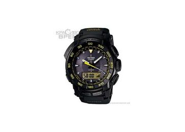 Коллекция: PRO-TREK Корпус: Нержавеющая сталь + пластик Гарантия: 1 год. Комплектация: часы, фирменная упаковка, инструкция, гарантийный талон. Особенности:Ударопрочный корпус из стали и пластика. Tough Solar (солнечная батарейка) - аккумулятор заряжается от солнечной панели, расположенной на циферблате, средний срок службы аккумулятора 8-10 лет. При полном заряде аккумулятора работоспособность может сохраняться до 6-ти месяцев в полной темноте и до 23 месяцев в режиме сохранения энергии. При разрядке аккумулятора срабатывает индикатор на дисплее, показывая что часы необходимо зарядить. Полностью автоматическая светодиодная подсветка, активируется при понижении уровня освещения и повороте дисплея часов в сторону лица. Секундомер - точность 1/100, максимально измеряемое время 60 минут. Таймер - обратный отсчет времени, при окончании отсчета издается 10-ти секундный сигнал. Минимальный интервал 1 минута, максимальное время установки 60 минут. Возможность установки 5-ти вариантов будильника. Почасовой сигнал - каждый час срабатывает сигнал, данную функцию можно отключить. Полностью автоматический календарь до 2099 года. 12/24-х часовой формат времени. Компас - показания от 0 до 359 градусов. Автоматическая калибровка по северному направлению. Шаг показаний 1 градус. Альтиметр - позволяет измерять колебания высоты от -700 м. до 10000 метров. Шаг измерения 5 метров. Измерение высоты - встроенный датчик давления измеряет барометрическое давление, пересчитываемое в относительную высоту. Память на 14 изменений высоты с указанием высоты, даты и времени, память на максимальное и минимальное значение. Память на разницу в высотах и среднее значение, графическое отображение изменений. Барометр - показания от 260 гПа до 1100 гПа, шаг измерений 1 гПа, графическое отображение изменений за последний 24 часа. Термометр - измерение от -10С до + 60С, шаг измерений 0,1С. Мировое