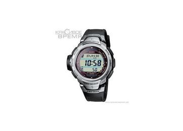 Коллекция: PRO-TREK Корпус: Пластик Гарантия: 1 год. Комплектация: часы, фирменная упаковка, инструкция, гарантийный талон. Особенности:Многофункциональные часы для спортивного туризма. Полностью автоматическая электролюминесцентная подсветка с автоматической активацией при тусклом, неясном свете и выключением подсветки при достаточном освещении. Автоматическая коррекция показаний по радиосигналам точного времени. Подзарядка аккумулятора от энергии солнечного света. Альтиметр: встроенный датчик барометрического давления с возможностью вывода результатов в единицах высоты над уровнем моря. Максимальная высота - 10000 метров над уровнем моря. Барометр: встроенный датчик давления для измерения барометрического давления. Встроенный датчик температуры. Отображение текущего времени в основных городах и регионах мира. Секундомер с точностью показаний 1/100 сек и максимальным временем измерения - 24 час. Таймер обратного отсчета. 5 ежедневных будильников. Автоматический календарь. Модуль часов рассчитан на работу при низких температурах. Минеральное стекло устойчивое к возникновению царапин. Корпус из стали и пластика. Ремешок из полимерных материалов. Размеры корпуса 50,3 мм (по оси заводной головки)х45,0 мм (по вертикали) х 11,6 мм (толщина) / 89 грамм. Надежный браслетный замок с тройным сгибом. None