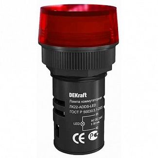 - Лампа сигнальная ЛК-22, 22мм? 24В, AC DC Красный | код. 25066DEK | DEKraft по выгодной цене 90 р. руб.;