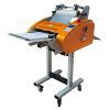Рулонный ламинатор автоматический, скор. 2500 мм/мин, 250 мкм, 6 валов, шир. 480 мм, регулировка темп. и скорости, LCD дисплей, реверс, легкая установка рулонов, простая фиксация натяжения плёнки, автоматическое поддержание режима натяжения плёнки, регулятор сведения валов, обрезка и перфорация плёнки с рулона, автоподатчик, автоматическая обрезка заламинированной продукции, выпрямление листов, в комплекте стенд на колесах, габариты 750x780x1140 мм, вес 62 кг. None