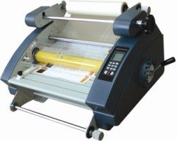 Рулонный ламинатор, скор. 4500 мм/мин, 250 мкм, 4 вала, шир. 380 мм, регулировка темп. и скорости, индикатор темп., реверс, легкая установка рулонов, простая фиксация натяжения плёнки, автоматическое поддержание режима натяжения плёнки, встроенный задний резак, устр. для сматывания бумаги (ревайндер), выпрямление листов, габариты 505x670x550 мм, вес 51 кг. None
