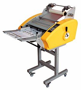 Рулонный ламинатор автоматический, скор. 4500 мм/мин, 250 мкм, 6 валов, шир. 380 мм, регулировка темп. и скорости, LCD дисплей, реверс, легкая установка рулонов, простая фиксация натяжения плёнки, автоматическое поддержание режима натяжения плёнки, регулятор сведения валов, обрезка и перфорация плёнки с рулона, автоподатчик, автоматическая обрезка заламинированной продукции, выпрямление листов, в комплекте стенд на колесах, габариты 750x780x1140 мм, вес 62 кг. None