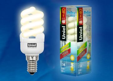 - КЛЛ 8Вт. Е14 3000К спираль Uniel в каталоге Лампы накаливания в Москве;