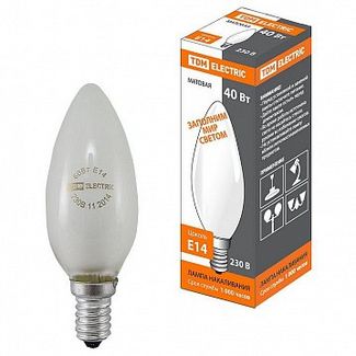 - Лампа накаливания Свеча матовая 40 Вт-230 В-Е14 | код. SQ0332-0017 | TDM в каталоге Лампы накаливания в Москве;
