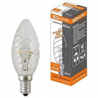 - Лампа накаливания Витая свеча прозрачная 40 Вт-230 В-Е14 | код. SQ0332-0013 | TDM по выгодной цене 27 р. руб.;