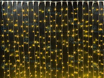Светодиодная гирлянда Занавес, высота 2 м, ширина 9 м, 220 В, постоянное свечение, IP 54, 1800 LED, цвет диодов желтый, провод прозрачный, соединяемая, б/п в комплекте None