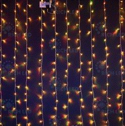 Светодиодная гирлянда Занавес, высота 1.5 м, ширина 2 м, облегченный, 220 В, видеоэффект, IP 54, 200 LED, цвет диодов RGB хамелеон, провод прозрачный, соединяемая, б/п в комплекте None