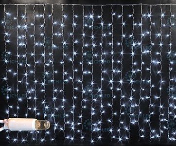 Светодиодная гирлянда Занавес, высота 2 м, ширина 1.5 м, облегченный, 220 В, постоянное свечение, IP 65, герметичный колпачок, 300 LED, цвет диодов белый, провод белый, соединяемая, без б/п None