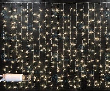 Светодиодная гирлянда Занавес, высота 2 м, ширина 1.5 м, облегченный, 220 В, постоянное свечение, IP 65, герметичный колпачок, 300 LED, цвет диодов теплый белый, провод белый, соединяемая, без б/п None