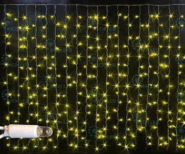 Светодиодная гирлянда Занавес, высота 2 м, ширина 1.5 м, облегченный, 220 В, постоянное свечение, IP 65, герметичный колпачок, 300 LED, цвет диодов желтый, провод белый, соединяемая, без б/п None