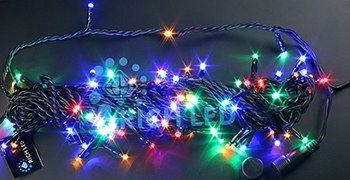 Светодиодная гирлянда Нить 10 метров, 24 В, постоянное свечение, IP 54, 100 LED, цвет диодов мульти, провод черный, соединяемая, без б/п None