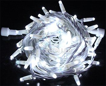 - Rich LED RL-S10CF-220V-RW W Уличная светодиодная гирлянда Нить 10 м, белый, мерцание, провод резиновый белый в каталоге LED дисплеи в Москве;