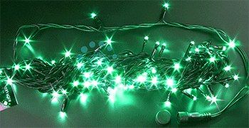 Светодиодная гирлянда Нить 10 метров, 24 В, мерцание, IP 54, 100 LED, цвет диодов зеленый, провод черный, соединяемая, без б/п None