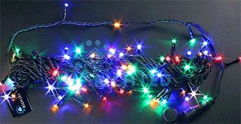 Светодиодная гирлянда Нить 10 метров, 24 В, мерцание, IP 54, 100 LED, цвет диодов мульти, провод черный, соединяемая, без б/п None