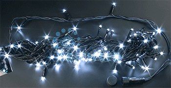 Светодиодная гирлянда Нить 10 метров, 24 В, мерцание, IP 54, 100 LED, цвет диодов белый, провод черный, соединяемая, без б/п None