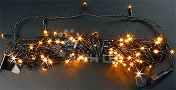 Светодиодная гирлянда Нить 10 метров, 24 В, мерцание, IP 54, 100 LED, цвет диодов желтый, провод черный, соединяемая, без б/п None