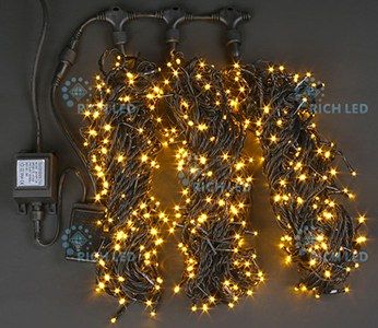 Светодиодная гирлянда Спайдер, 3 нити по 20 метров, 24 В, 8 режимов свечения, IP 54, 600 LED, цвет диодов желтый, провод черный, б/п в комплекте None