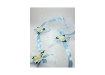 Лента для капота машины Gilliann CAR019 Лента для украшения капота машины. Сделана из белой прозрачной органзы, по центру прошита узкая атласная лента голубого цвета. Через одинаковое расстояние расположены декоративные композиции - бело-желтые соцветия, утопающие в зеленых лепестках. Прекрасное украшение для свадебного кортежа. Материалы и декор: органза, атласные ленты, декоративные элементы. None