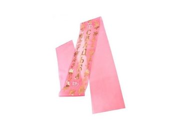 Лента "Свадьба" - розовая STA478 Свадебная лента для украшения машины. Сделана из розового шелка, надпись "Свадьба" и орнамент нанесены золотой краской. .Размер: 15х160 см. Материал: шелк. None