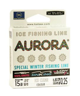 Леска "Aurora" - создана специально для зимней ловли. Очень хорошо выдерживает низкую температуру. Поверхность обработана таким образом, что она не обмерзает как стандартные лески. Отлично подходит для подледного лова. А прозрачный цвет гарантирует, что она практически незаметна даже в кристально прозрачной воде. В самом холодном климате, при температуре до -40, она сохраняет свои свойства. None
