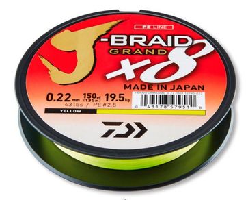 - Леска плетеная Daiwa J-Braid Grand X8 135м 0,22мм (19,5кг) желтая в каталоге Леска и шнуры в Москве;