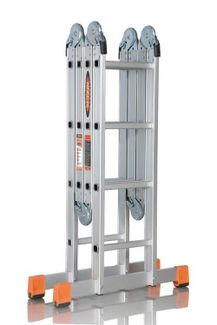 Шарнирная лестница трансформер из 4-х частей. Может использоваться как стремянка, подмости или приставная лестница, лестница с выносом None