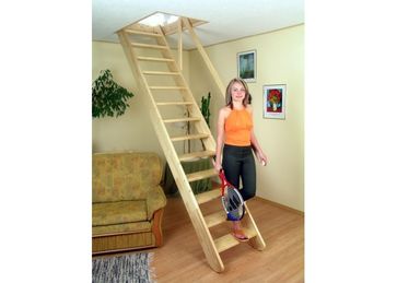 - отдельные бруски соединены между собой в шиповое соединение и проклеены. Лестница занимает мало места и имеет угол наклона 52°. Ступени лестницы прямые. Лестница поставляется в разобранном виде, упакованной в картонную коробку. Прилагается все необходимое для сборки (саморезы, крепежные уголки, ключ и инструкция). В Россию поставляют лестницы высотой до 300 см. и шириной 70 см.Размеры:Ширина ступеней: 70 смВысота лестницы: 300 смУгол наклона: 52° при заказе от 30 тысяч рублей - 100% предоплата. Есть доставка.