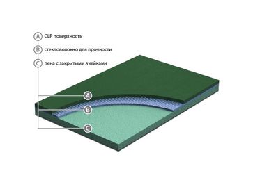 Линолеум для спортивных залов Грабо Спорт Рокет обладает защитным соем 0,7 мм, который обеспечивает материалу высокую износостойкость.