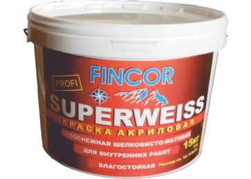 овышенной белизной, высокой экономичностью в расходе, хорошей укрывистостью. Краска, великолепно заполняет структуру основания и скрывает микротрещины. Свойства: супербелая с высокой сцепляемостью и кроющей способностью, экологически чистая. Краска SUPERWEISS (СУПЕРВАЙС) применяется для высококачественной окраски потолков и стен внутри жилых, административных и промышленных помещений. Краску можно наносить на обои, на грубоволокнистые обои, штукатурку, бетон, кирпич, пенопласт, плиты из гипсокартона, древесину и т. д. Образует суконно-матовое покрытие. Базовый цвет RAL 9003